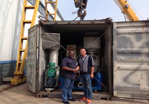下圖為發往尼日利亞客商的日產50噸木薯淀粉加工設備集裝箱現場,發貨期間,外國客商監裝,四達車間人員全力以赴,積服從調配,6個集裝箱順利完成裝箱,下圖為裝箱現場。。